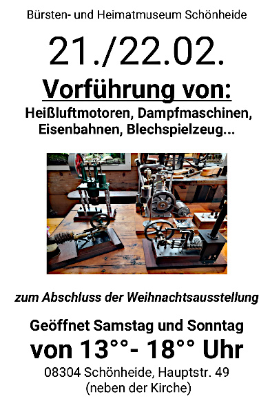 Heißluftmotoren, Dampfmaschinen und Vakuummotoren in Funktion. Immer am letzten Februar-Wochenende.